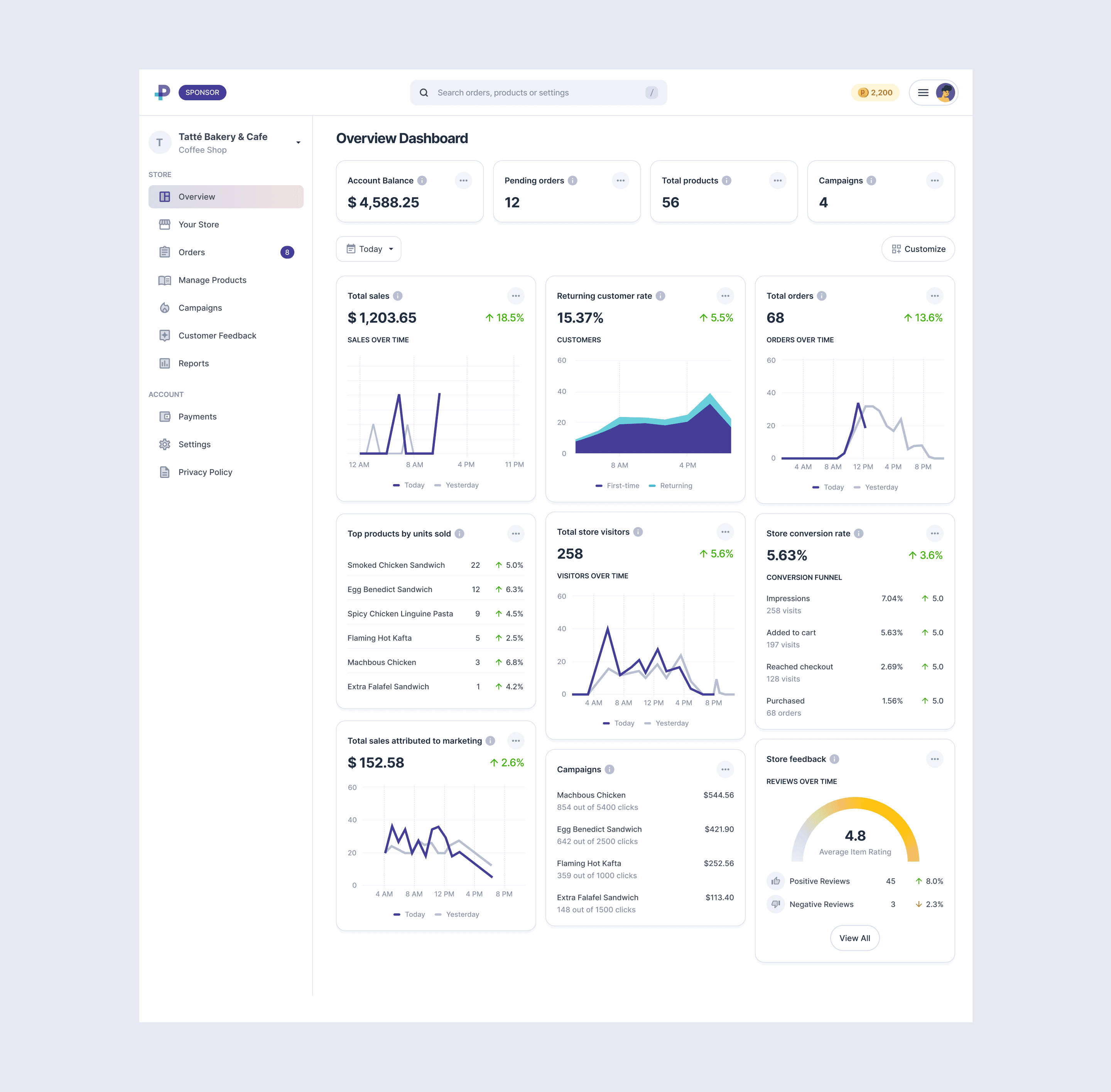 In addition to managing orders, sponsors also need visibility into how their business is performing on the platform. However, many analytics dashboards overwhelm users with excessive data and complex charts. For Progrecity, the goal was to provide decision-ready insights rather than detailed analytics. The sponsor dashboard highlights a few key metrics that matter most to business owners: